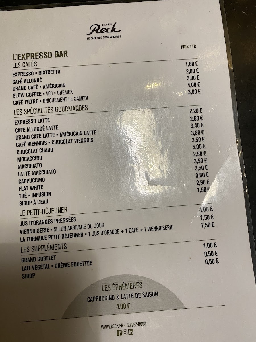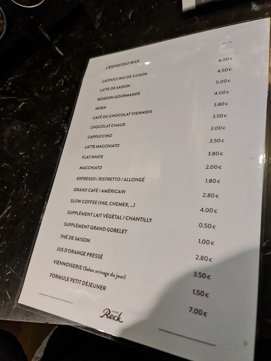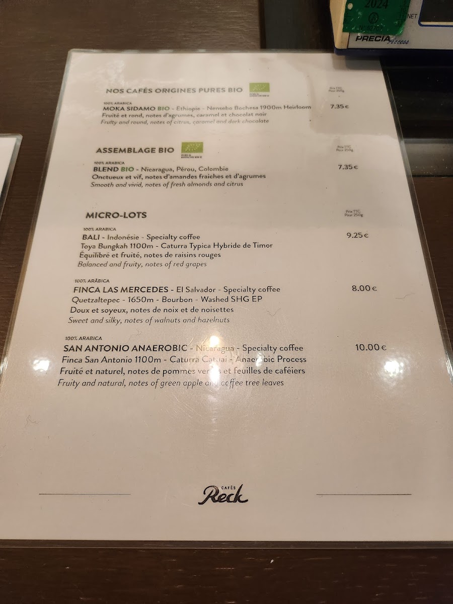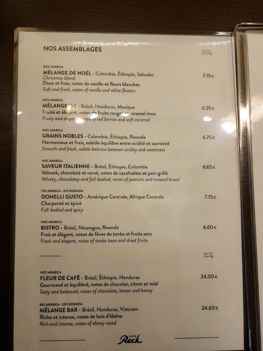 Cafés Reck Menu